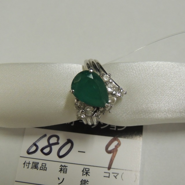 リング エメラルド ダイヤ Pt900 10.20g 石目:2.20 0.69