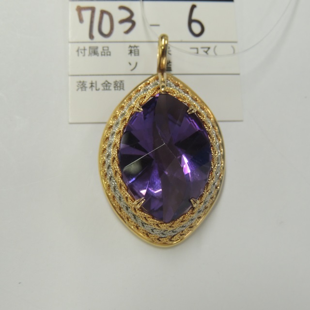 ブローチ アメジスト K18/Pt900 14.40g 石目:24.80