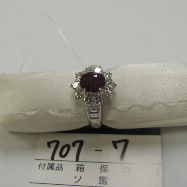 リング ルビー Pt900 7.60g 石目:R1.50 D1.30