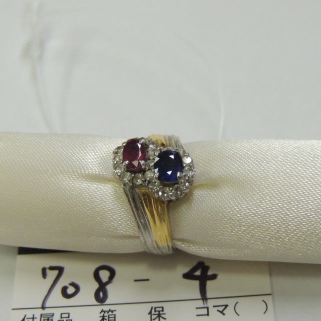 リング ルビー サファイア Pt900/K18 6.10g 石目:R0.32 S0.43 FD0.31