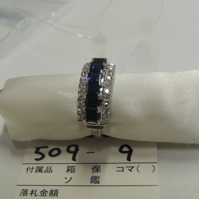 リング 非加熱サファイア ダイヤ Pt900 8.20g 日宝協ソ 石目:S1.86 D0.36