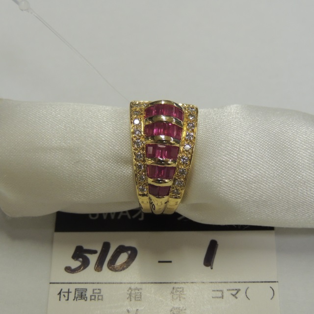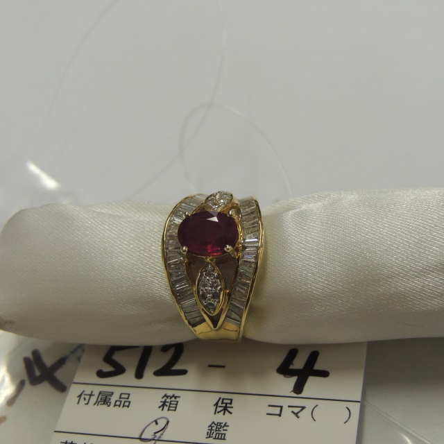 リング ルビー ダイヤ K18 5.70g GRJソ 石目:1.30 FD1.27
