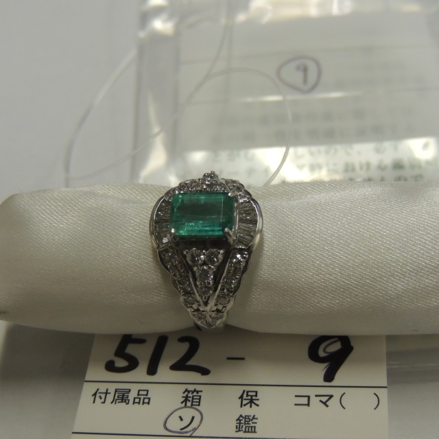 リング エメラルド ダイヤ Pt900 7.90g 中ソ 石目:1.42 FD0.89