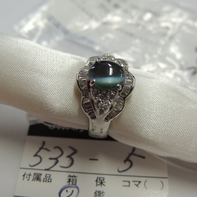 リング キャッツアイ ダイヤ Pt900 12.50g 中ソ 石目:CA2.167 D1.06