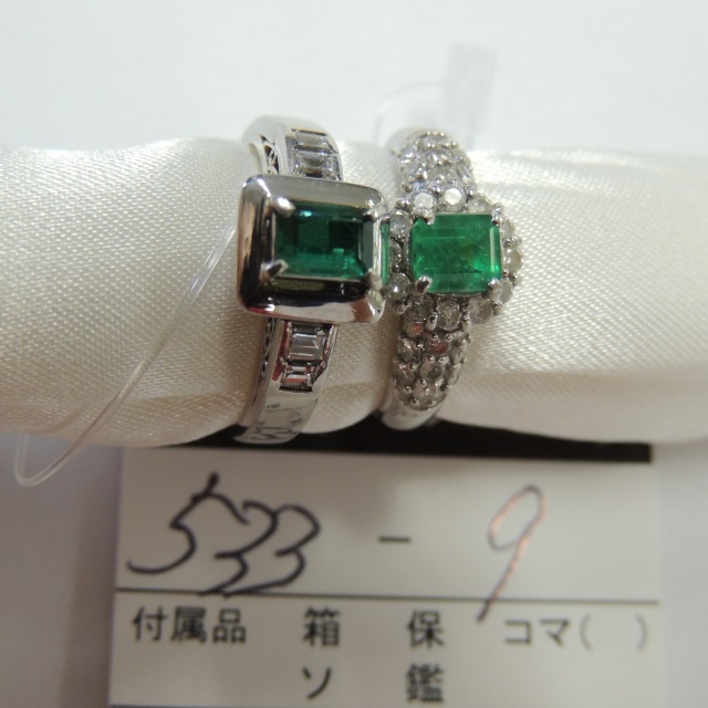 リング ダイヤ エメラルド Pt900 12.70g 石目:D0.62 E0.61 0.50
