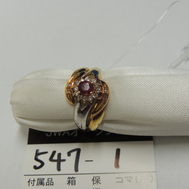 リング ルビー Pt900/K18 5.90g 石目:R0.80 FD0.08