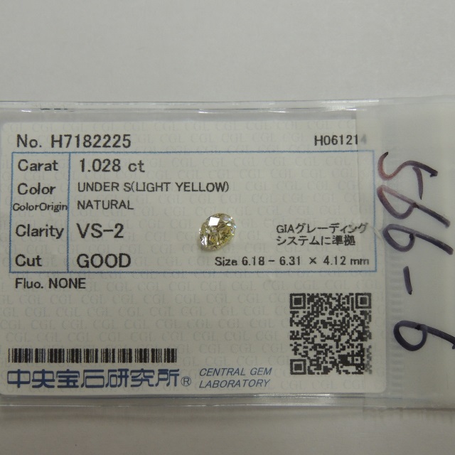 ルース ダイヤ LIGHT YELLOW-VS2-G 中ソ 石目:D1.028