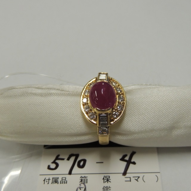 リング ルビー (フラクチャーに透明物質) K18 9.20g 中ソ 石目:R3.57 FD0.64