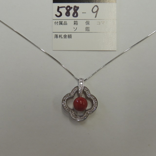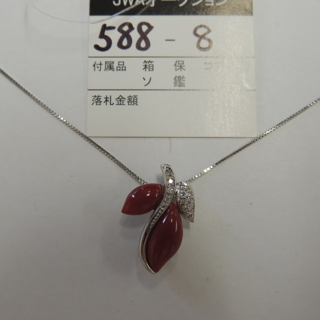ネックレス サンゴ ダイヤ K18WG 6.50g 石目:0.12