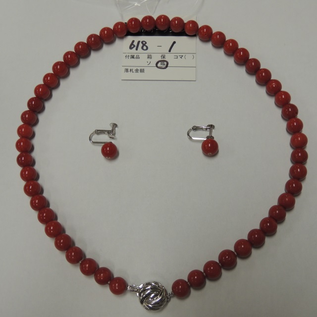 ネックレス イヤリング 2点セット サンゴ K14WG 鑑
