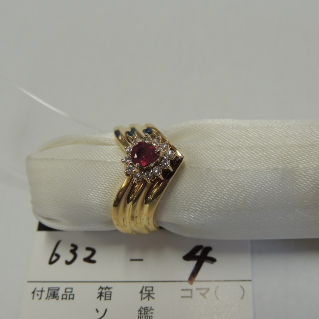 リング 角サファイア ダイヤ 750 11.35g 石目:3.50 0.40
