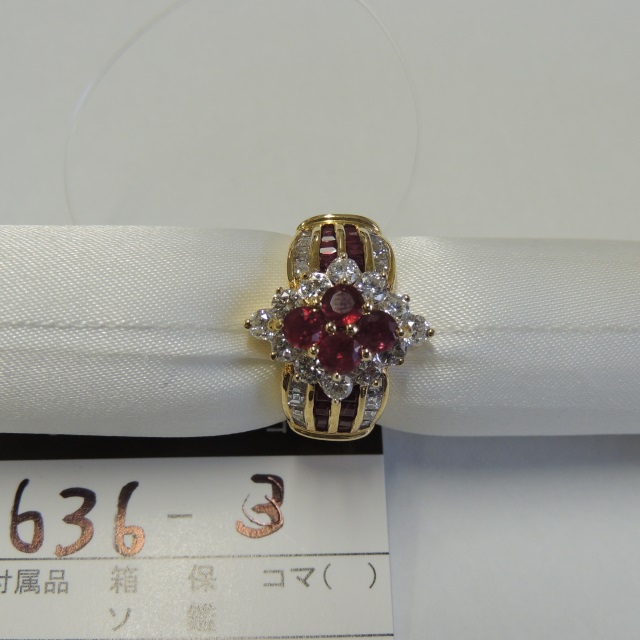 リング ルビー Pt900/K18 6.90g 石目:R2.58 D0.13