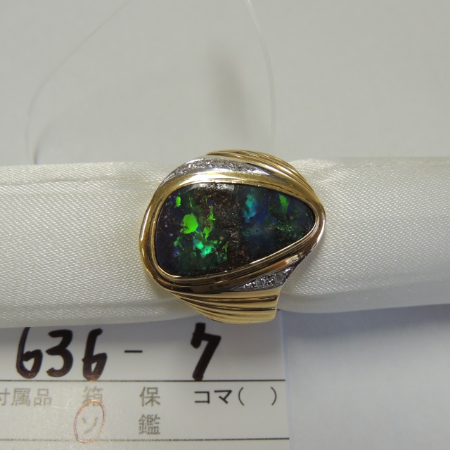 リング ボルダーオパール K18/Pt900 11.20g 中ソ 石目:5.18 D0.06