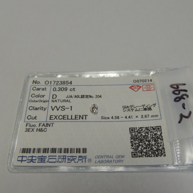 ルース D/VVS1/3EX H&C 中ソ 石目:0.309