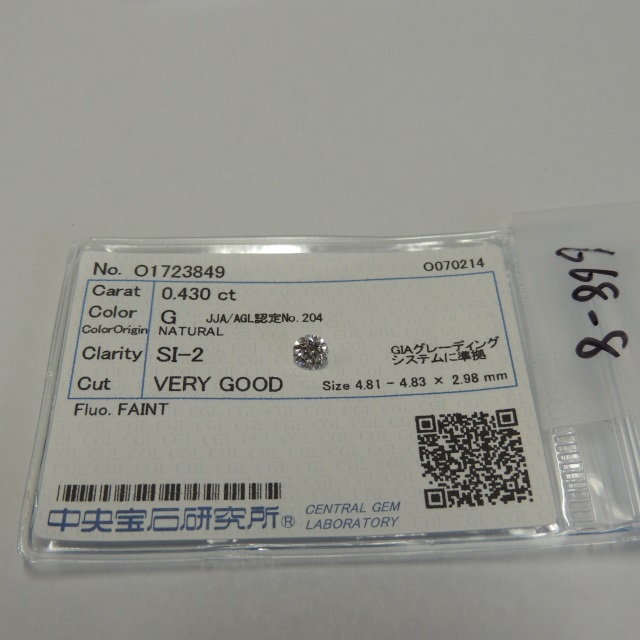 ルース G/SI2/VG 中ソ 石目:0.430