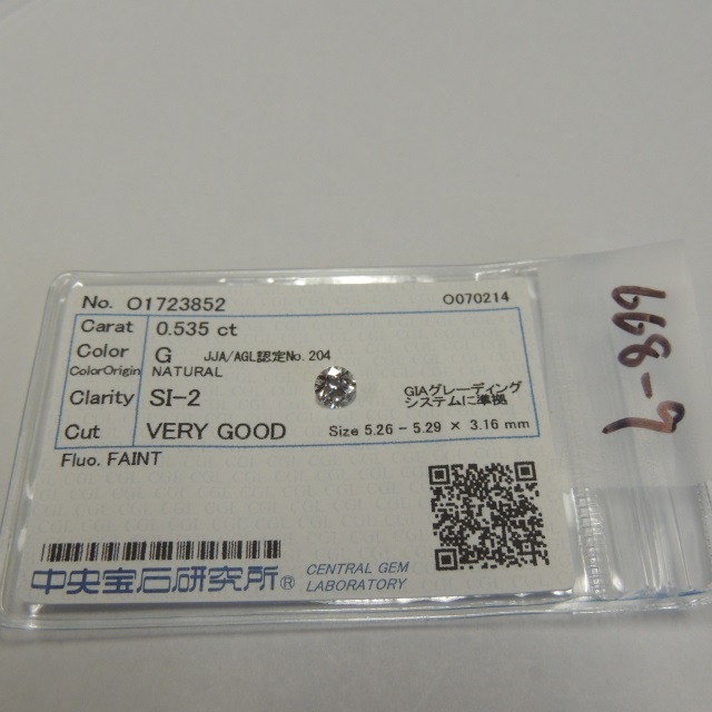 ルース G/SI2/VG 中ソ 石目:0.535