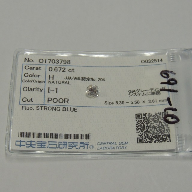 ルース ダイヤ H-I1-POOR 中ソ 石目:0.672