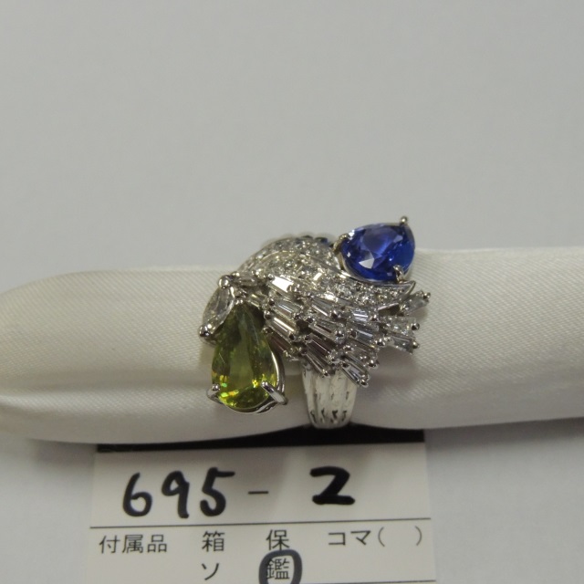 リング スフェーン タンザナイト Pt900 18.20g 鑑 石目:SU2.94 TZ2.53 D1.75