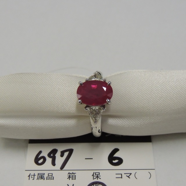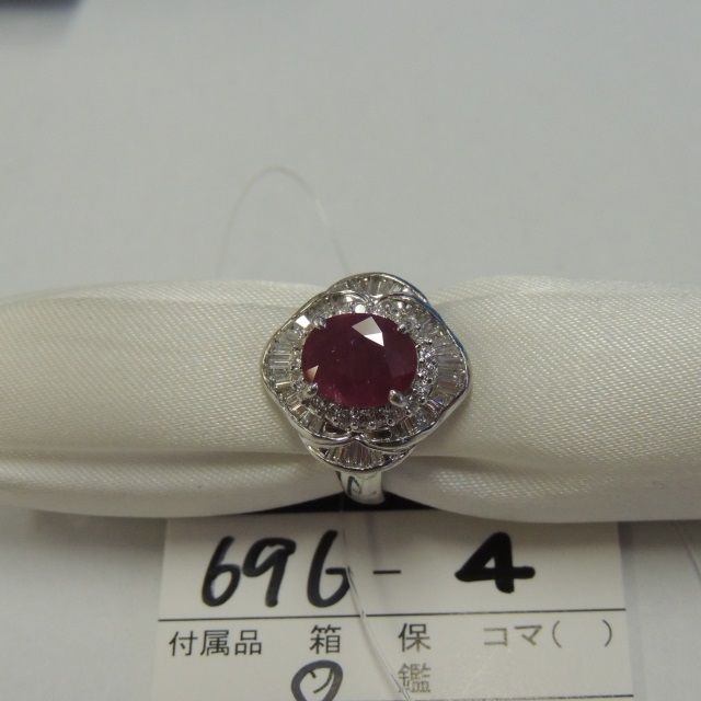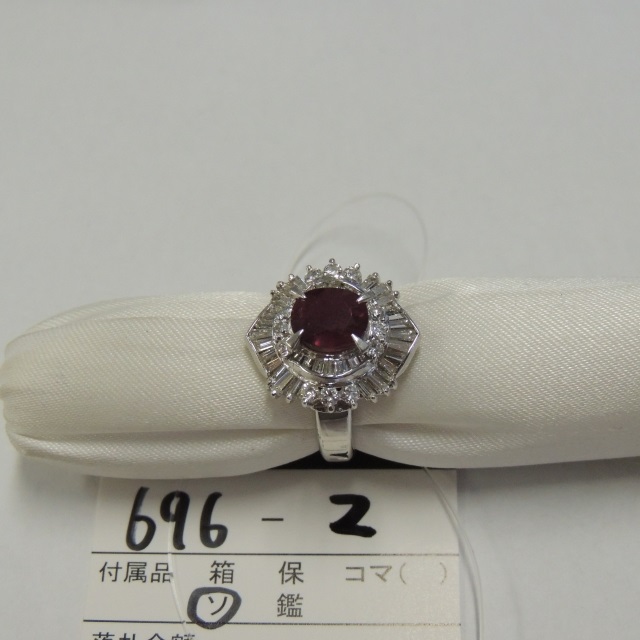 リング ルビー Pt900 8.80g GRJソ 石目:R2.15 D0.64