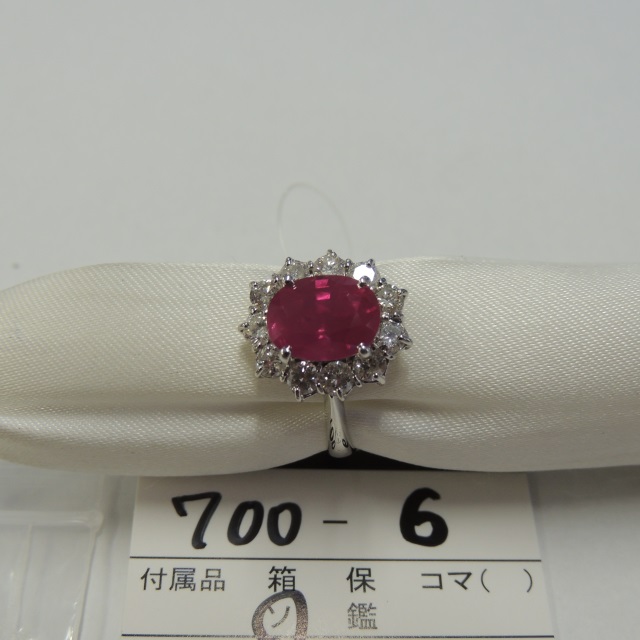 リング ルビー Pt900 5.70g GRJソ 石目:R3.275 D1.02