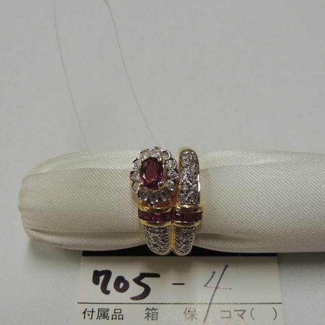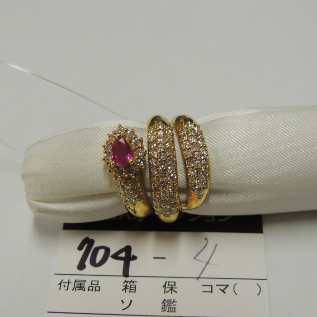 リング ダイヤ ルビー 金性刻印無 K18 8.80g 石目:1.06 0.42