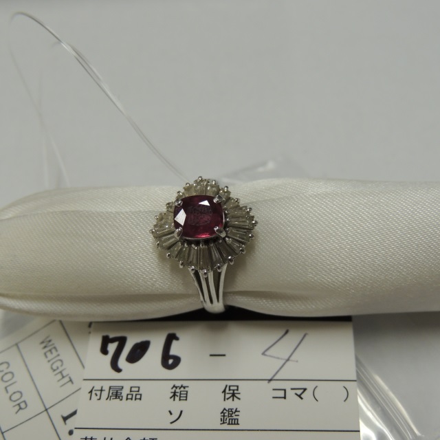 リング ルビー Pt900 6.80g 日宝ソ 石目:1.16 1.14