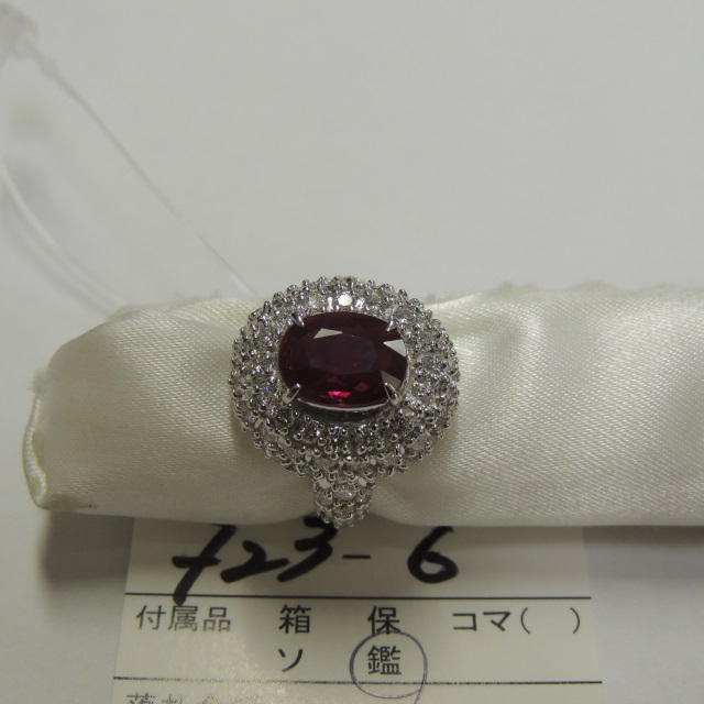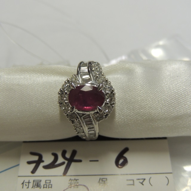 リング 非加熱 ルビー Pt900 12.20g GRJ鑑 石目:2.025 D1.68