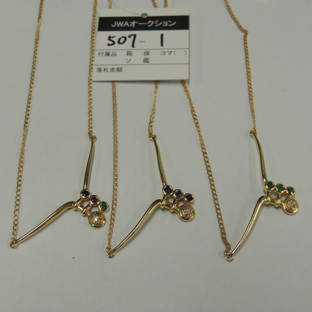 ネックレス エメラルド ルビー サファイヤ ダイヤ 750 15.90g 石目:S0.37 RSE0.30 E0.28 D0.15