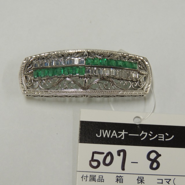 帯留 エメラルド ダイヤ Pt900 18.40g 石目:E1.51 D1.66