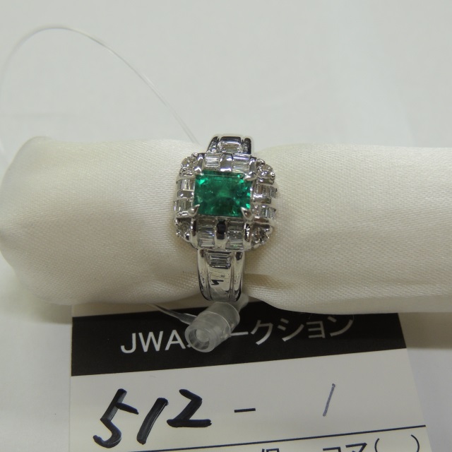 リング エメラルド ダイヤ Pt900 16.00g GRJソ 石目:E3.24 D0.75