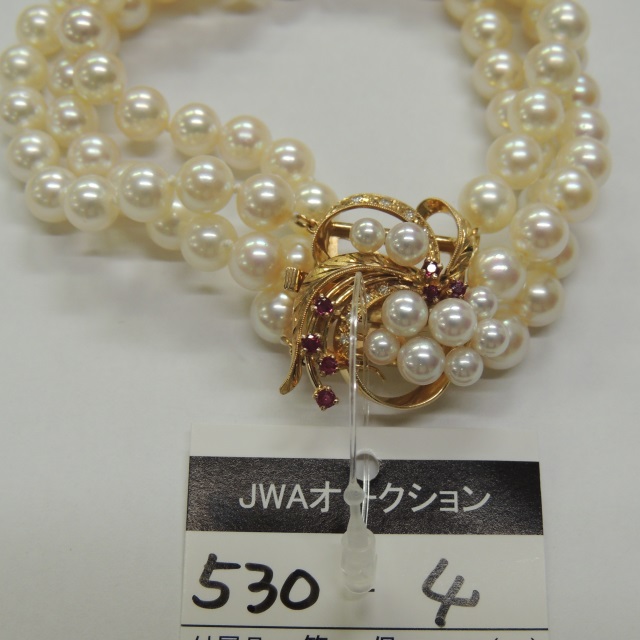 田崎 パール ダイヤ ルビー 3連ブレスレット K14YG 50.40g ケース