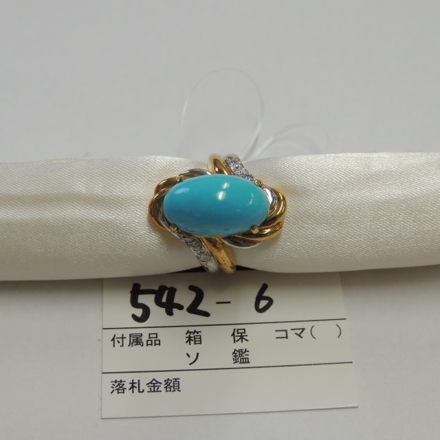 リング トルコ石 ダイヤ K18/Pt900 9.30g 石目:FD0.11