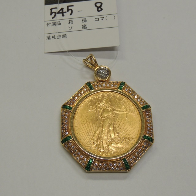 ペントップ コイン/エメラルド/ダイヤ コイン34.5g K21.6/K18 54.10g 石目:D1.12 D1.40 E1,15