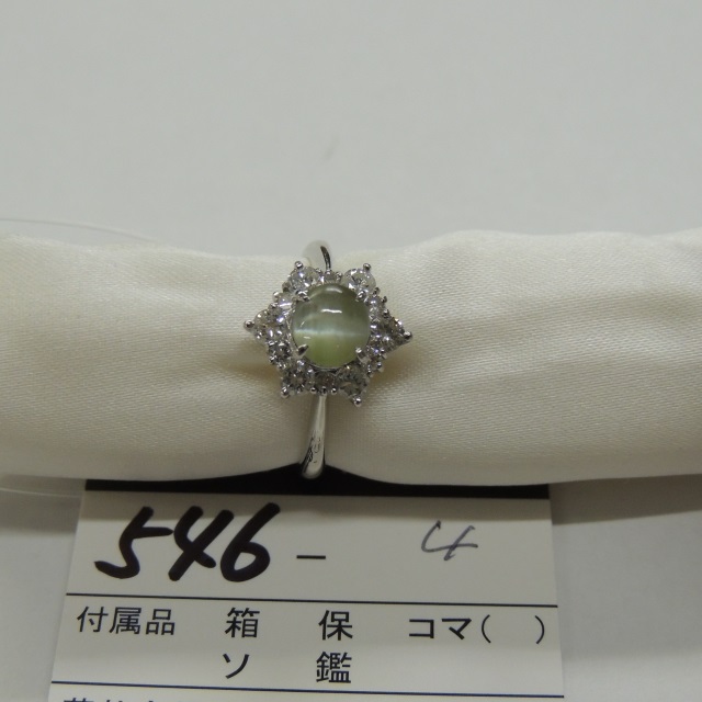 リング クリソベリルキャッツ ダイヤ Pt900 4.90g 石目:1.129 0.57