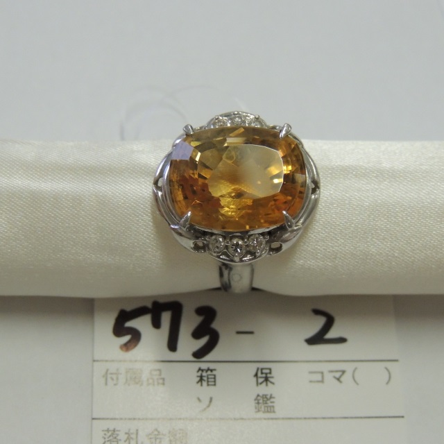 リング シトリン ダイヤ Pt900 11.50g 石目:CT11.35 FD0.21