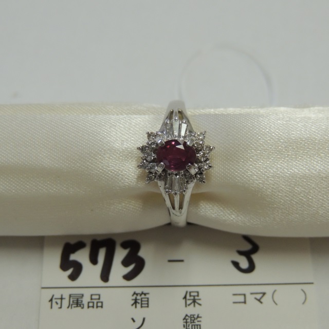 リング ルビー Pt900 6.00g 石目:R1.42 D0.67