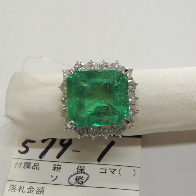 リング エメラルド ダイヤ Pt900 19.60g 中宝鑑 石目:E17.119 D2.32