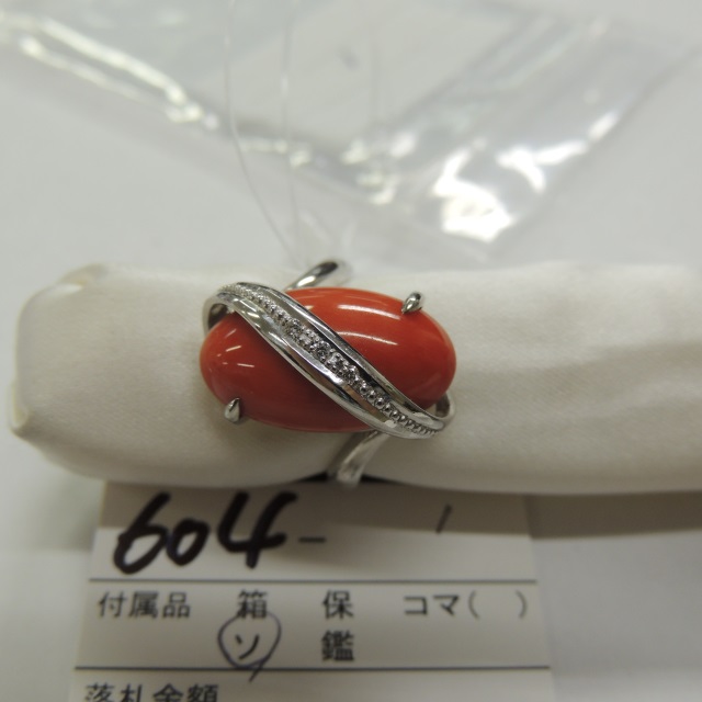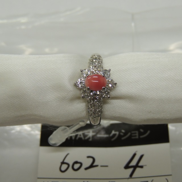 リング サンゴ ダイヤ Pt900 4.70g 日米ソ