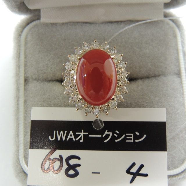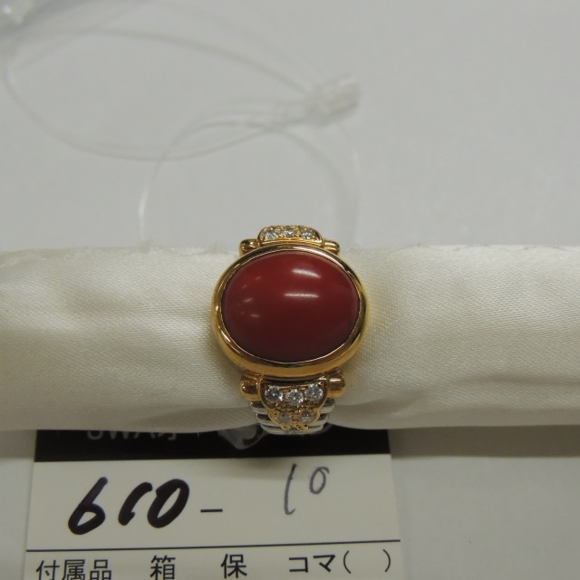 リング サンゴ ダイヤ Pt900/K18 12.20g 日米ソ 石目:8.14 0.24