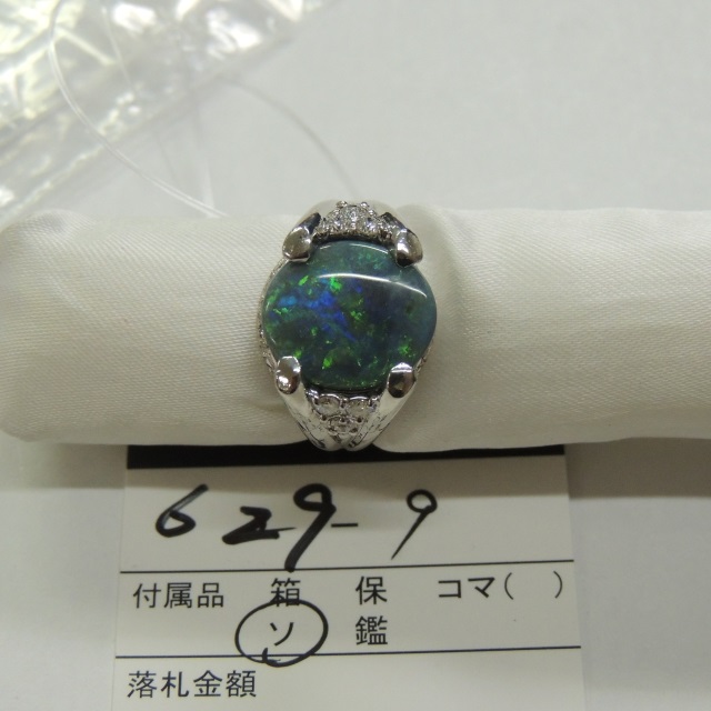 リング ブラックオパール Pt900 13.40g 中ソ 石目:5.87 0.32