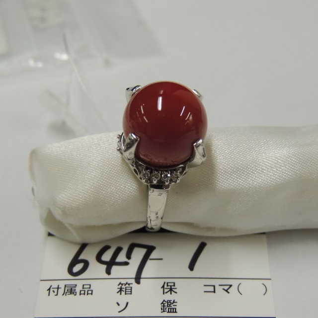 リング 血赤珊瑚 充填物 Pt900 10.10g 中ソ 石目:RC13.2 D0.08