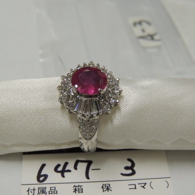 リング ルビー Pt900 9.80g GRJソ 石目:R3.02 D1.14