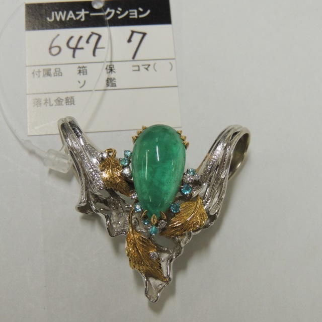 ペン・ブローチ カポション エメラルド Pt900/K18 27.60g 石目:E14.68 T0.25 D0.15