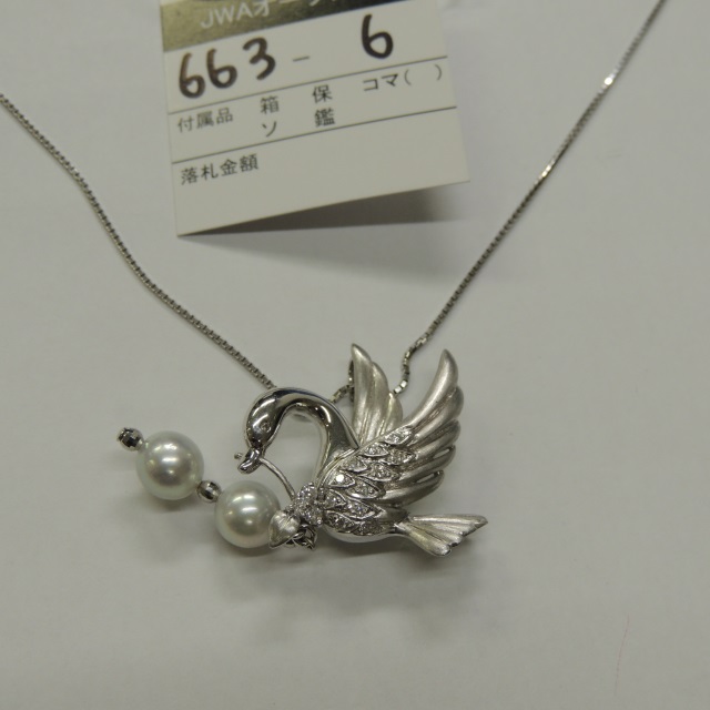 ネックレス パール 白鳥 K18WG 14.90g 石目:FD0.27