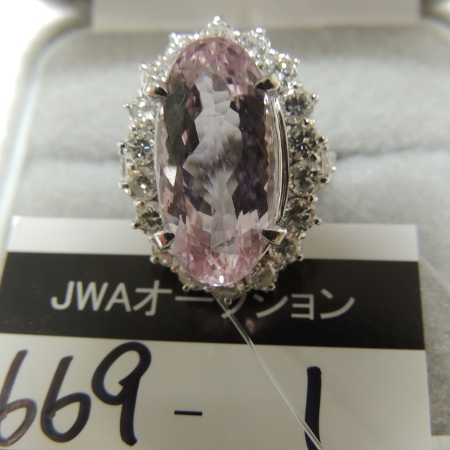 リング クンツァイト Pt900 13.70g 石目:KZ12.85 FD2.41