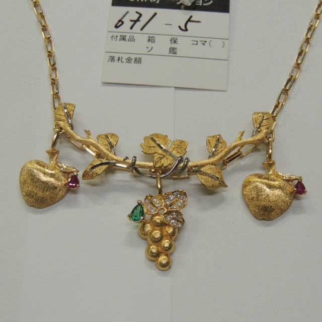ネックレス ルビー エメラルド ダイヤ K18 35.50g 石目:R0.22 D0.12 R0.25 D0.12 E0.35 D0.26