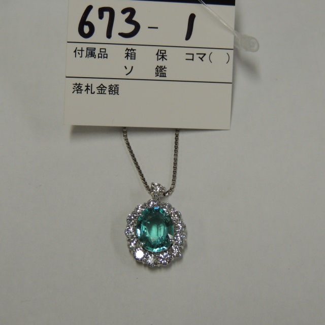 ペン・ネック パライバトルマリン Pt900/850 7.60g 鑑 石目:2.485 FD1.11
