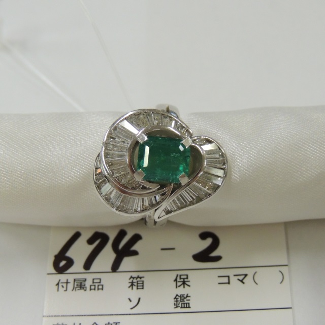 リング エメラルド Pt900 11.60g 石目:E1.57 D1.28