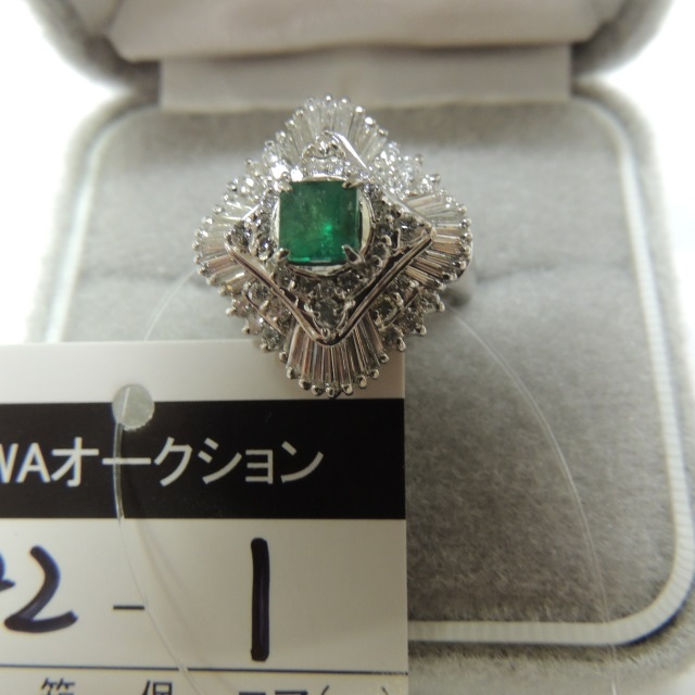 リング エメラルド ダイヤ Pt900 14.00g 石目:E0.807 D1.72