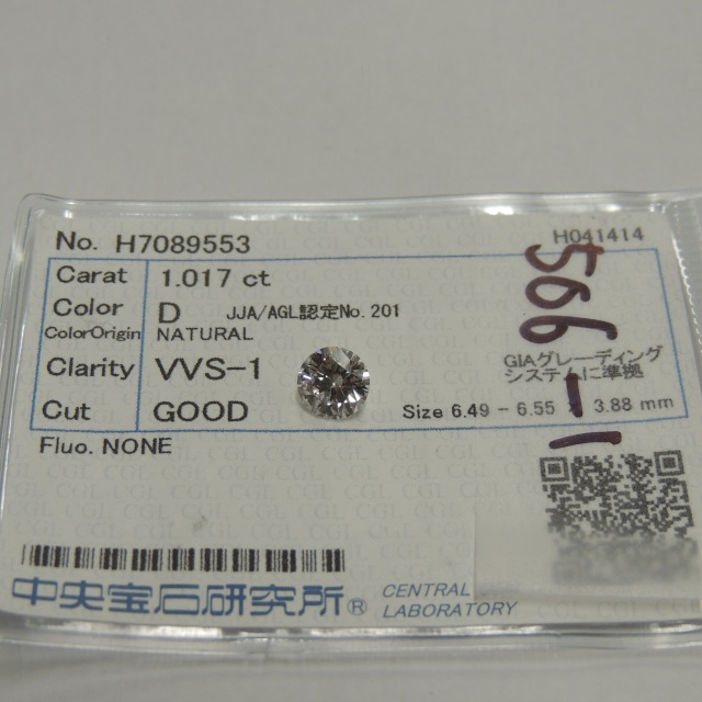 ルース D-VVS1-GOOD 中ソ 石目:1.017